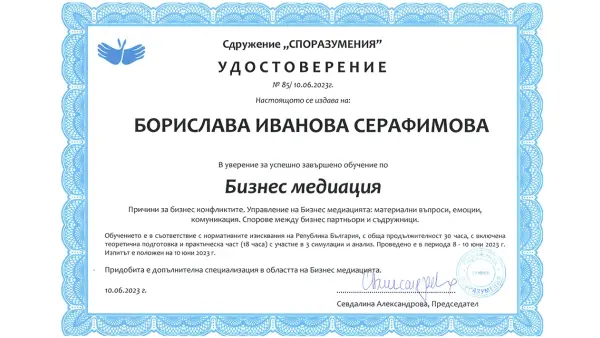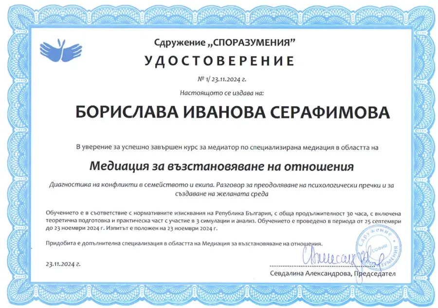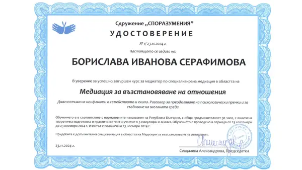 - Медиация за възстановяване на отношения-23.11.2024г.